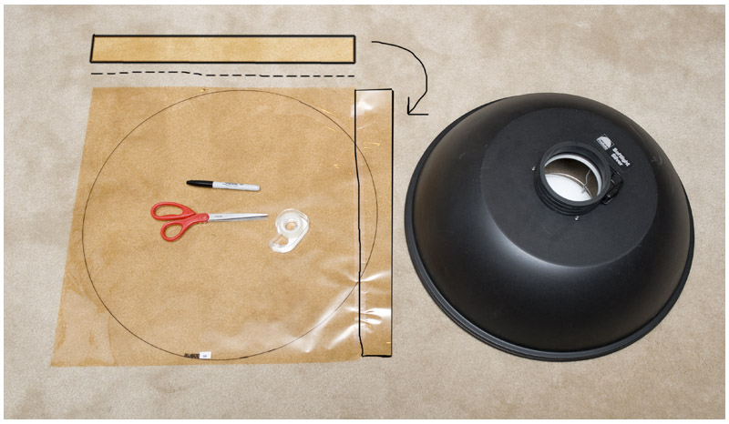 Just cut a strip, tape it into a donut and slide it around your centerpost light blocker/reflector. (Thanks Andrei!)